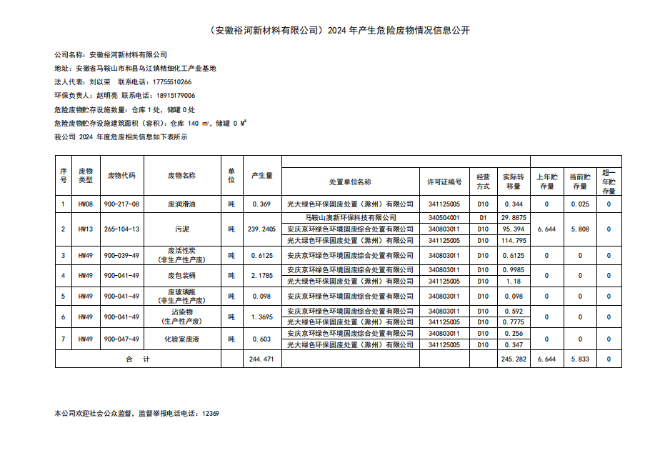 2024年產生危險廢物情況信息公開